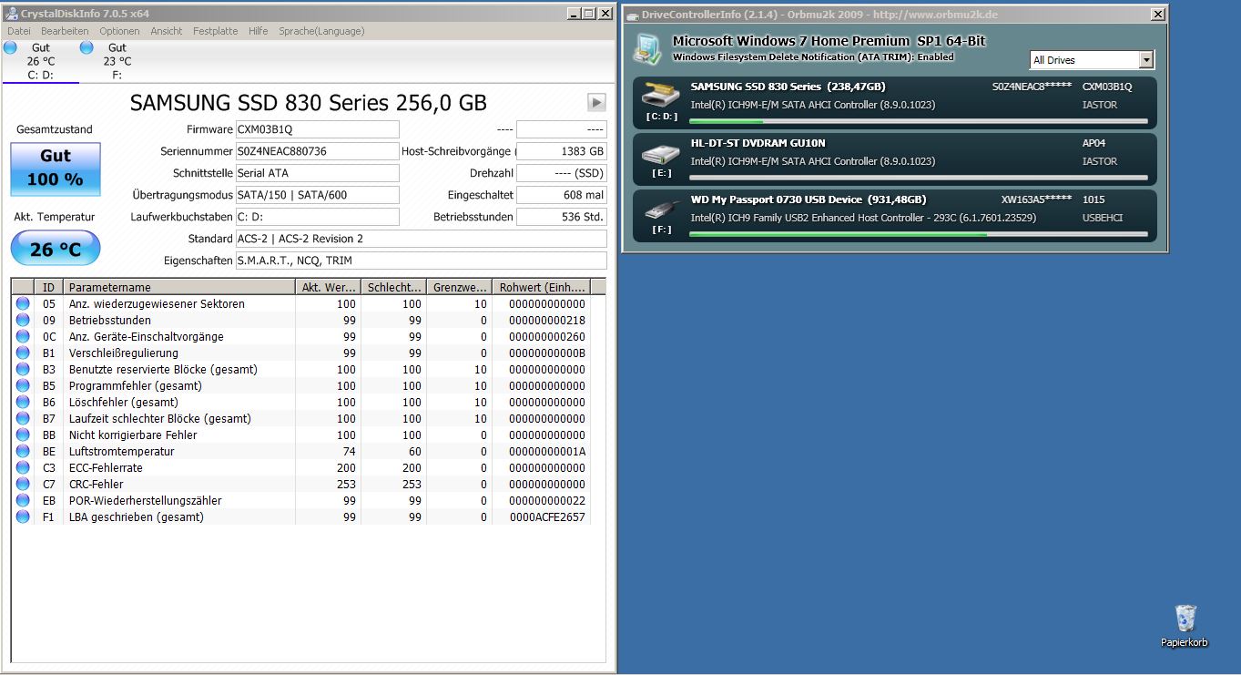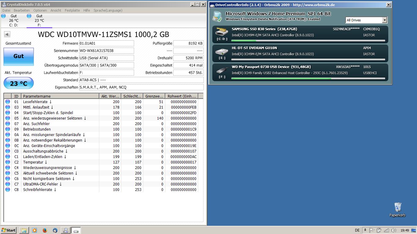 ich habe für meine Freundin auf meinem alten Acer Aspire 4810TG Win7 frisch installiert. Ich habe mir also zunächst zwei frische Partitionen auf der SSD angelegt und dann eine Grundinstallation von Win7 durchgeführt. Danach folgten nacheinander die Treiber für die vorhandene Hardware. Diese habe ich mir auf der Acer-Seite für o.g. Modell herunter geladen. Es sind also die letzten, die für das Modell bereit gestellt werden. Soweit lief alles prima. Ich habe nun etliche Windows-Updates automatisch installieren lassen, Office 2007, den neuesten Firefox und Thunderbird installiert, dann noch 7ZIP und Adope Reader. Das war's.
