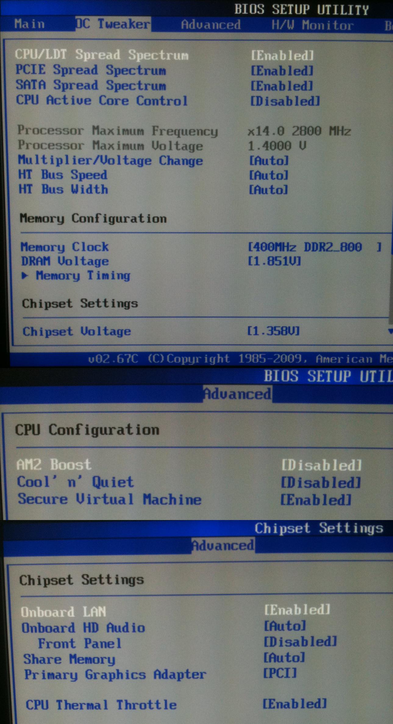 Packe bitte noch ein paar Fotos von den Menüs "Advanced" -> "CPU Configuration" und "Chipset Configuration" dazu.