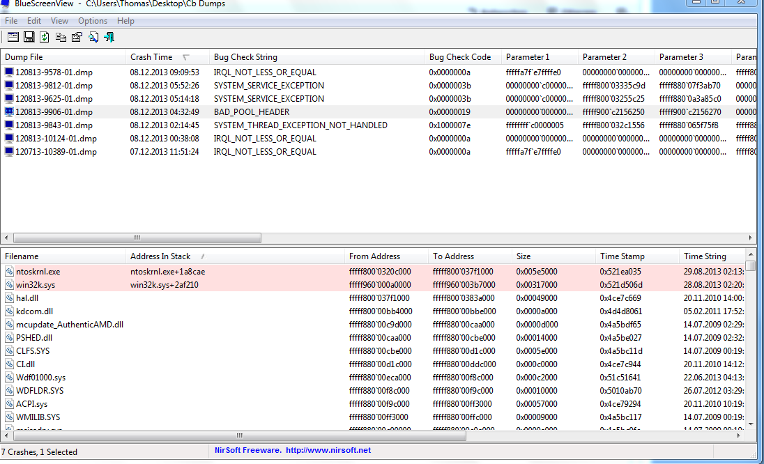 hab mir jetzt die Dumps angeschaut. Generell kann man sagen, dass alles extrem stark nach RAM aussieht.