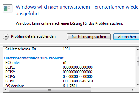 Hier noch eine Windowsmeldung nach dem Neustart: