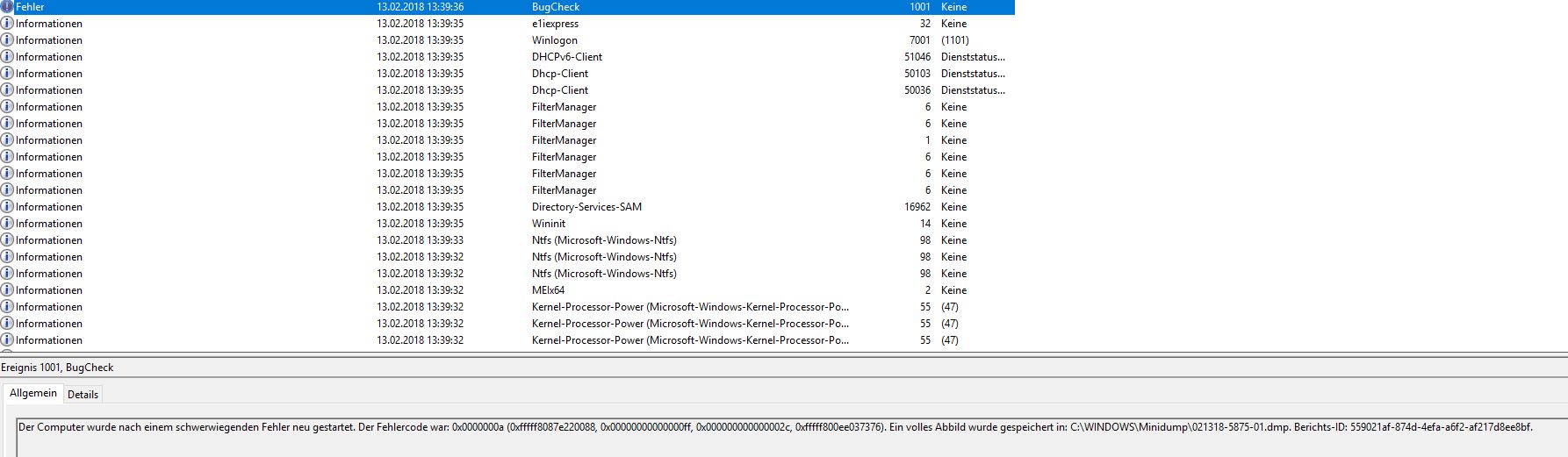 Allerdings erhalte ich im Event-Viewer direkt einen BUG-Check Code warum auch immer?