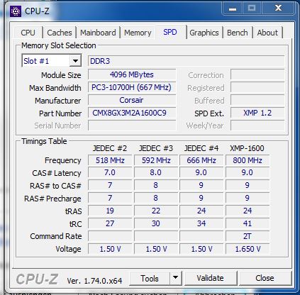 RAM: 4x4GB Corsair XMP CMX8GX3M2A 1600C9