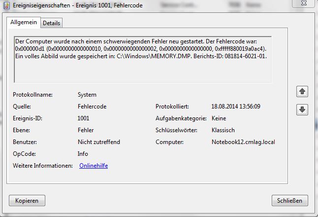 ein Chef-Notebook hatte vorhin zum zweiten Mal einen BlueScreen mit der berühmten Meldung "DRIVER_IRQL_NOT_LESS_OR_EQUAL", die ja alles oder auch nichts bedeuten kann.