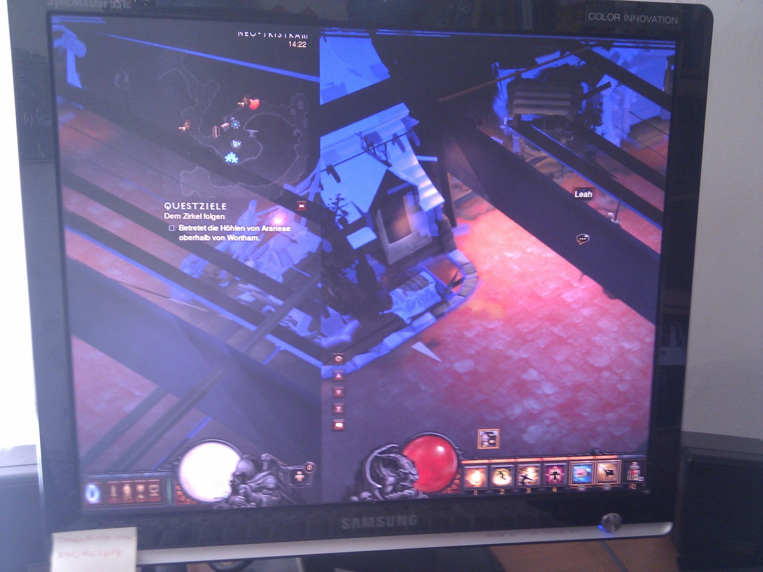 Das Foto vom Desktop zeigt die Grafikfehler vor dem neuen Aufsetzen, die anderen beiden zeigen Diablo 3, nachdem es ca 3 Minuten gelaufen ist, nach dem neuen Aufsetzen.