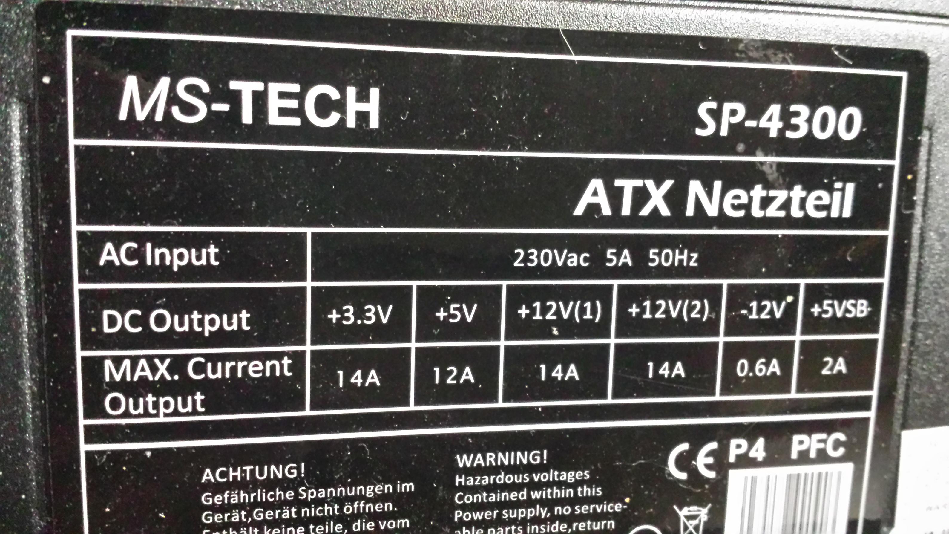 Kannst du vielleicht auch nochmal dein Netzteil posten, Namen und genaue Bezeichnung.
