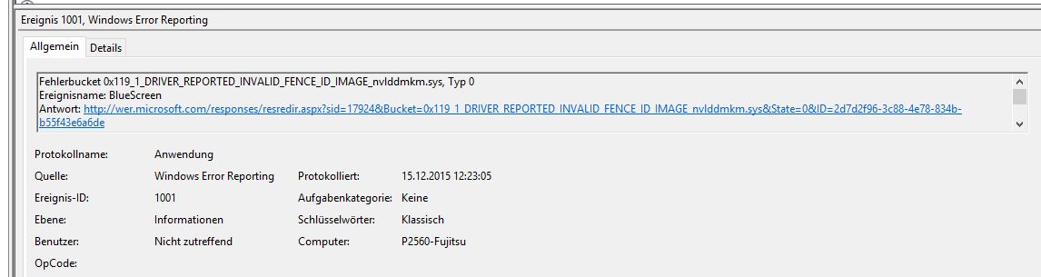 Völlig unvermittelt kommt es nun bei Windows 10 immer wieder zu Systemabstürzen (nicht einem bestimmten Vorgang zuordenbar) mit Bluescreen-Meldung lt. beilieg. Screenshot. Die Ereignisanzeige zeigt dann die ebenfalls hier beiliegende Fehlermeldung, bezugnehmend auf nvlddmkm.sys.