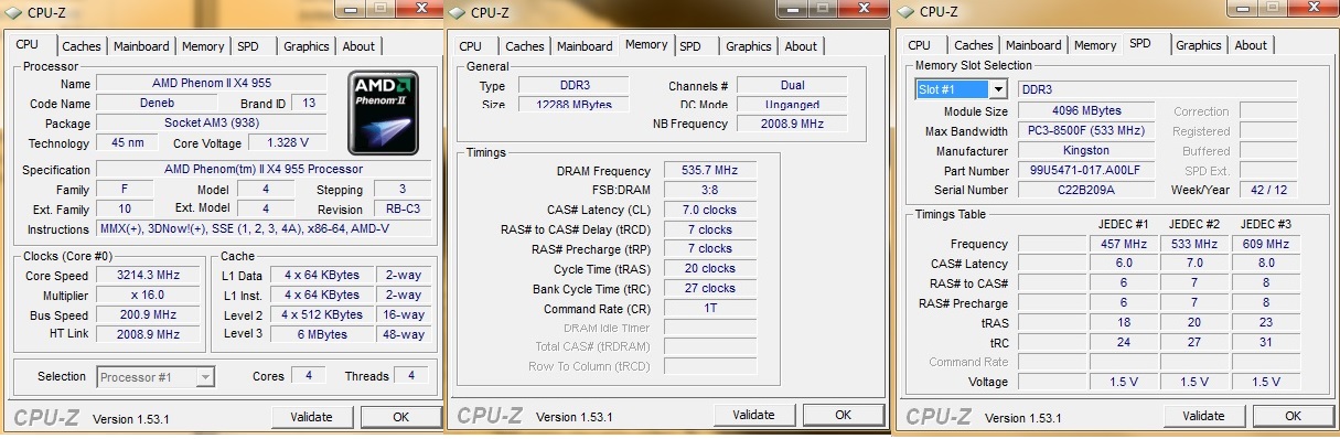 Angehängt sind noch die CPUz Reiter. Habe nur Slot 1 angegeben, da die anderen bis auf die Größe, Seriennummer und Herstellungswoche absolut identisch sind.