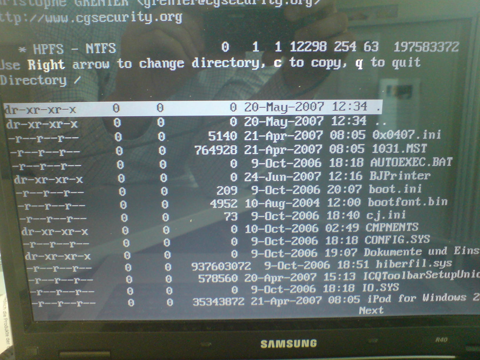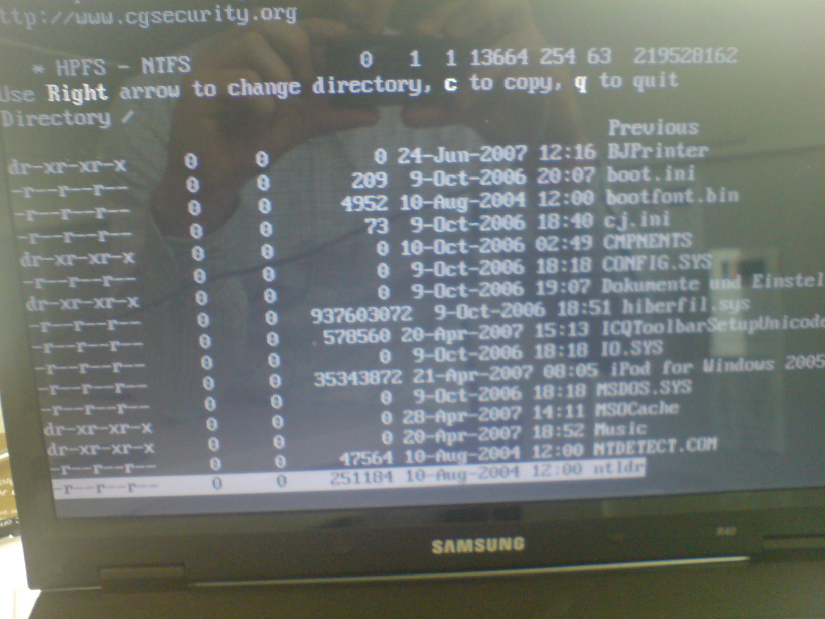 Aus den Screens, die man mit P bekommt, kann man Dateien auch sichern, falls Du etwas in Sicherheit bringen möchtest.
