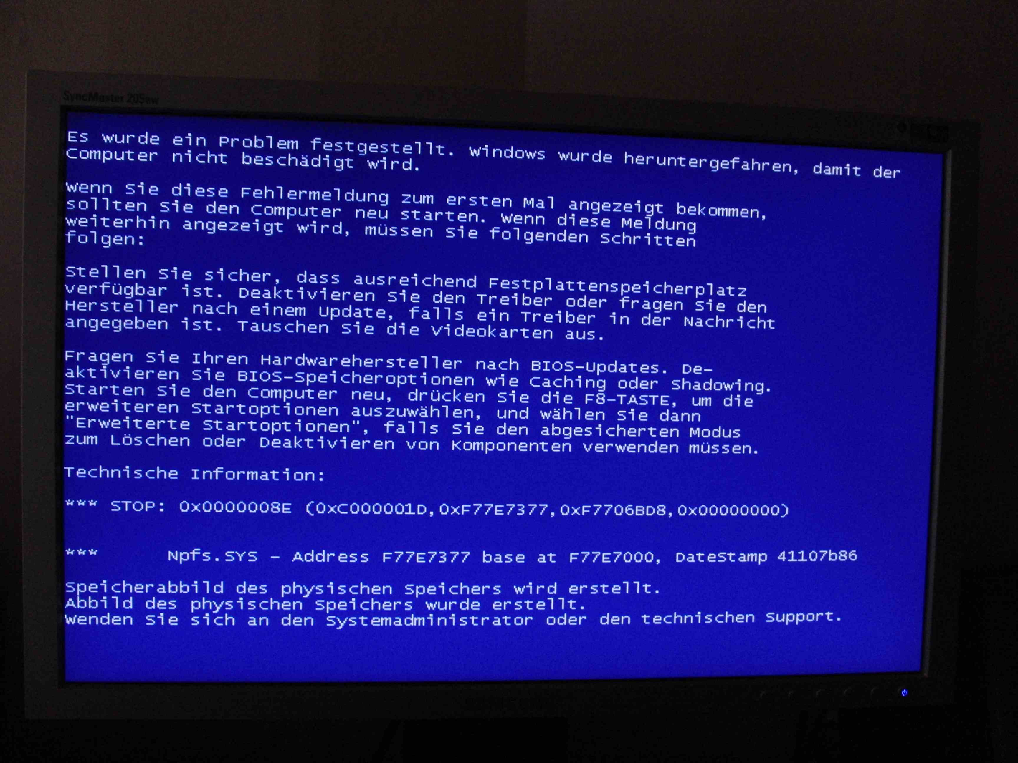 -> booten von Original Win XP cd, installation normal, dann dieser Bluescreen