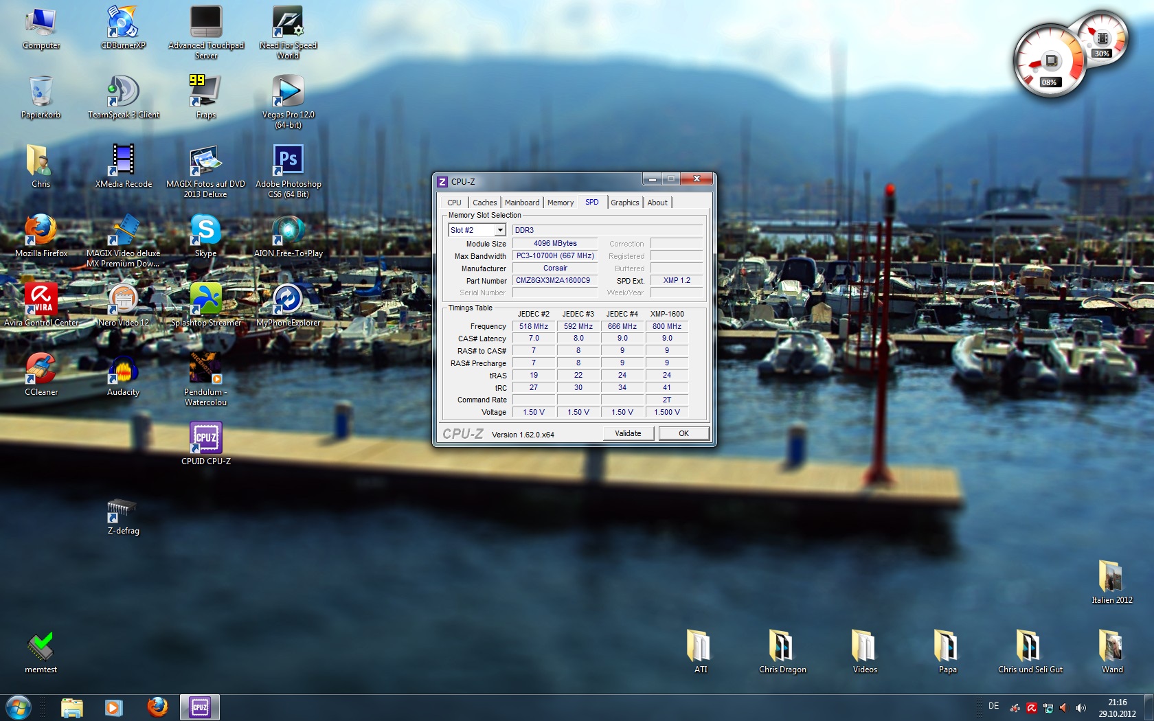 Corsair Vengeance 2x 4GB DDR3 Ram @ 1600MhZ "Stock"