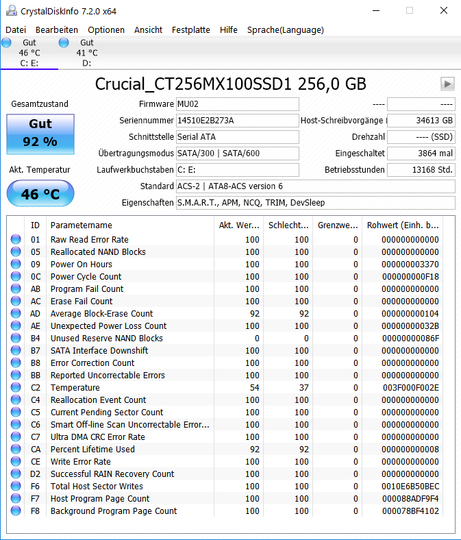 Schwer zu sagen ob ein Zusammenhang besteht oder nicht, aber wenn ich mich nicht täusche müsste zu der Zeit wo der BlueScreen auftrat auch gerade immer der jDownloader mit einem Download gelaufen sein, mit Speicherort auf die SSD. Deswegen habe ich auch nochmal ein Screenshot der Smart-Werte der SSD gemacht.