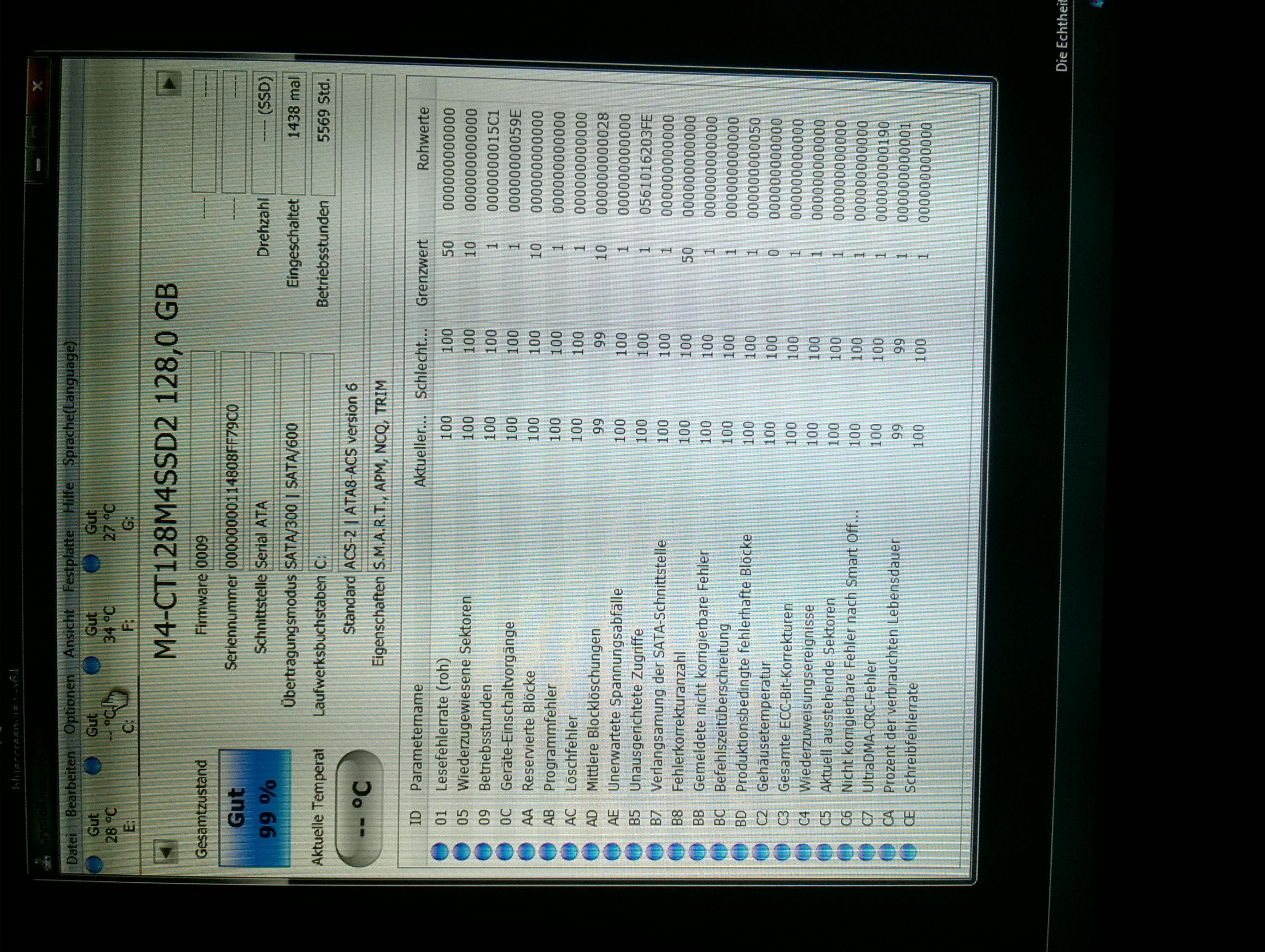 Selbstverständlich, die SMART Werte hab ich ausgelesen, Crystaldiskinfo stellt die M4 als good dar. Das Kabel wurde ebenfalls mit einer der HDD quergetauscht.