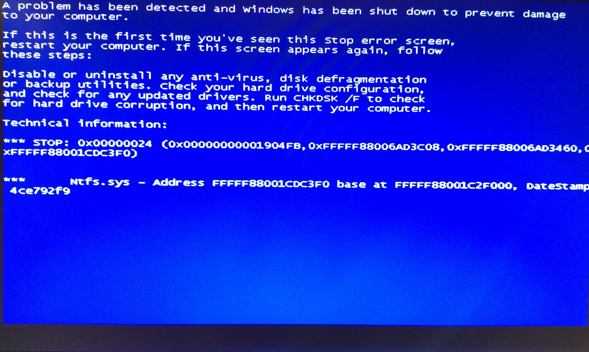 als es dann aber wieder einen bluescreen gab und der pc wieder nicht hoch fahren wollte habe ich versucht windows 7 erneut zu installieren wo dann aber bereits in der installation mehrere fehler aufgekommen sind