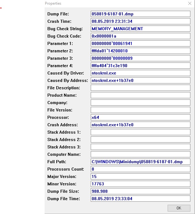 Guten Tag ich habe vorhin einen Bluescreen bekommen und auch in letzter Zeit mal häufiger unregelmäßige Abstürze bei Spielen wie PoE und Division 2. Auch einen komplett System Freeze hatte ich schon einmal.