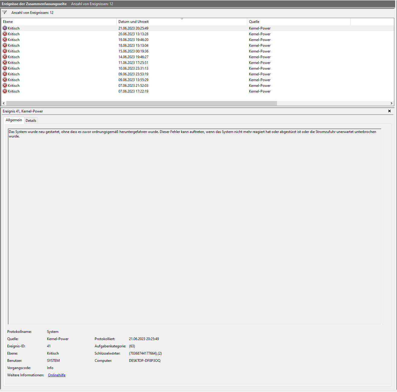 Oder der PC friert ein, wo ich nur durch die Einschalttaste den Computer herunterfahren kann.