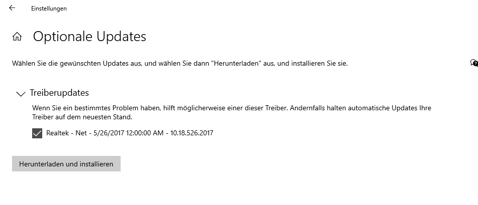 7. Es wird mir in den Einstellungen ein Treiber "Realtek" angezeigt, als optionale Möglichkeit, soll ich den installieren?