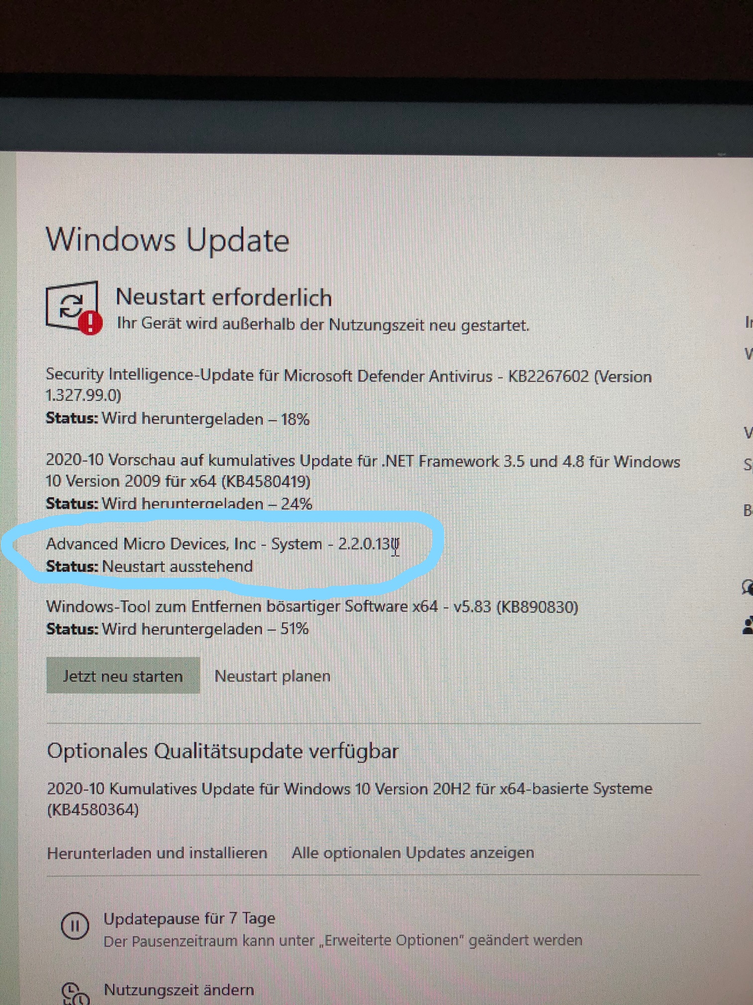 Es kann eigtl. nur die 20H2 sein und auf dem Bild in Beitrag #88 von Windows Update,