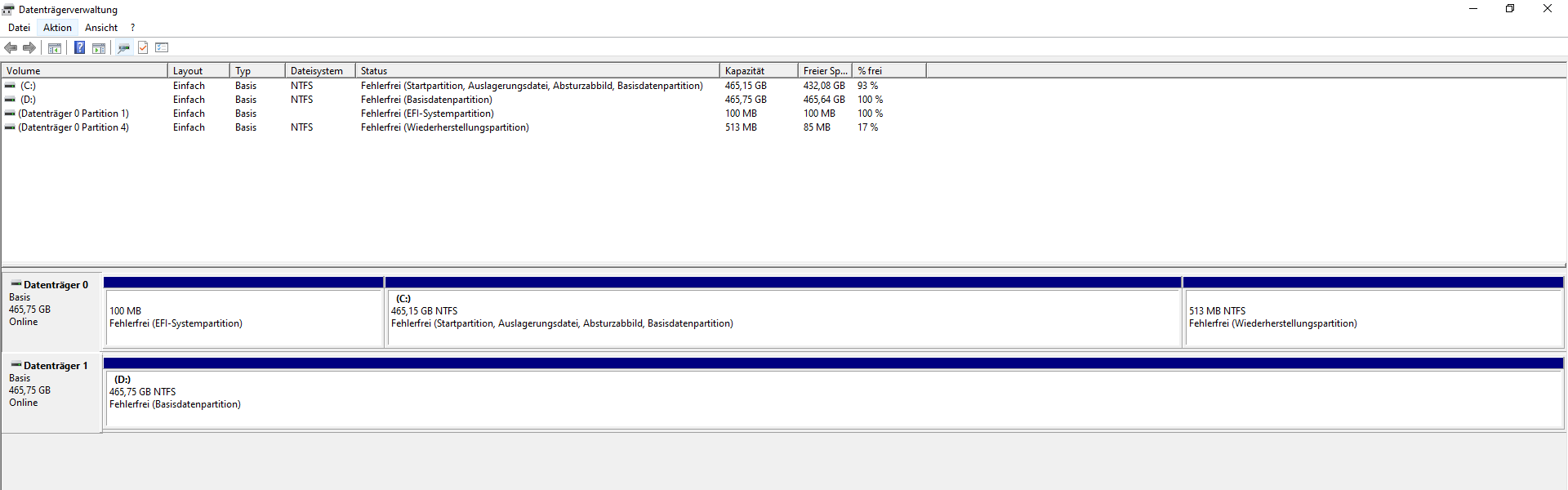 Silver Server schrieb:Das Bild in Beitrag 123 von der Datenträgerverwaltung sieht gut aus. So soll es ein.