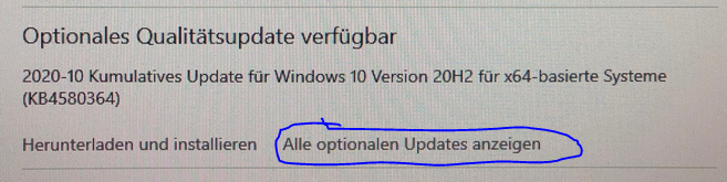 Das optionale Update KB4580364 habe ich auch gemacht, kommt aber am 2. Dienstag eh automatisch.
