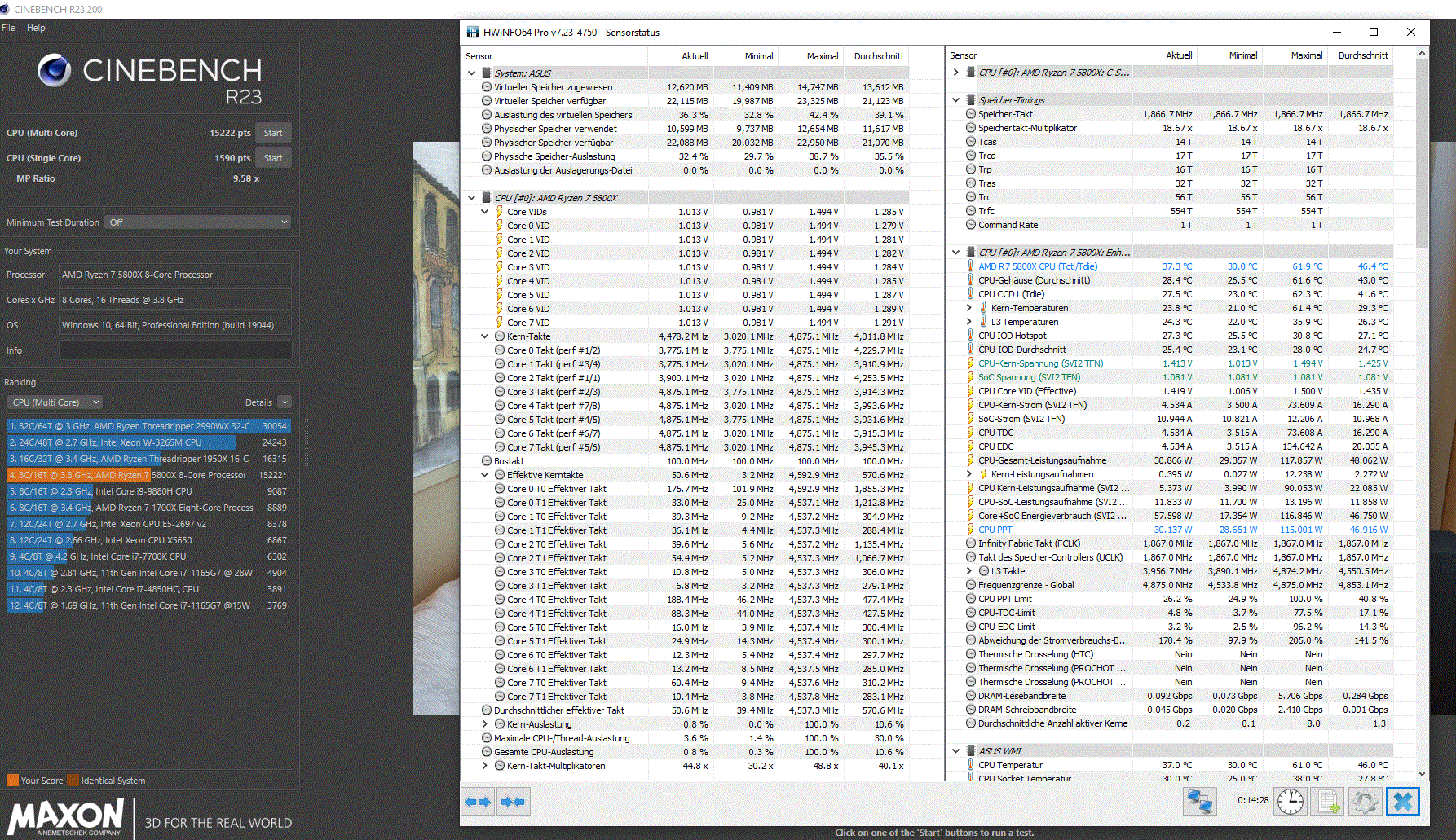 16GB G Skill TridentZ F4-3600C17-8GTZ wollten bei mir überhaupt nicht funktionieren (nur 2133 MHz).ReinerReinhardt schrieb:Ryzen 5800X (leicht undervoltet um Temp. etwas gegen zu wirken)