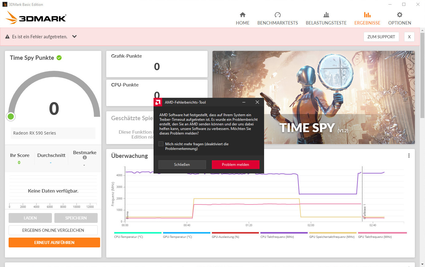 Wenn TimeSpy nach spätestens 4 Minuten crasht, haste dann denselben "AMD Polaris Fehler" (ich nenn das so) wie ich damals auf der RX590. Bedeutet, das sowohl im Benchmark als auch in richtig fordernden Spielen die Karte oder besser gesagt, der Grafiktreiber dichtmacht.