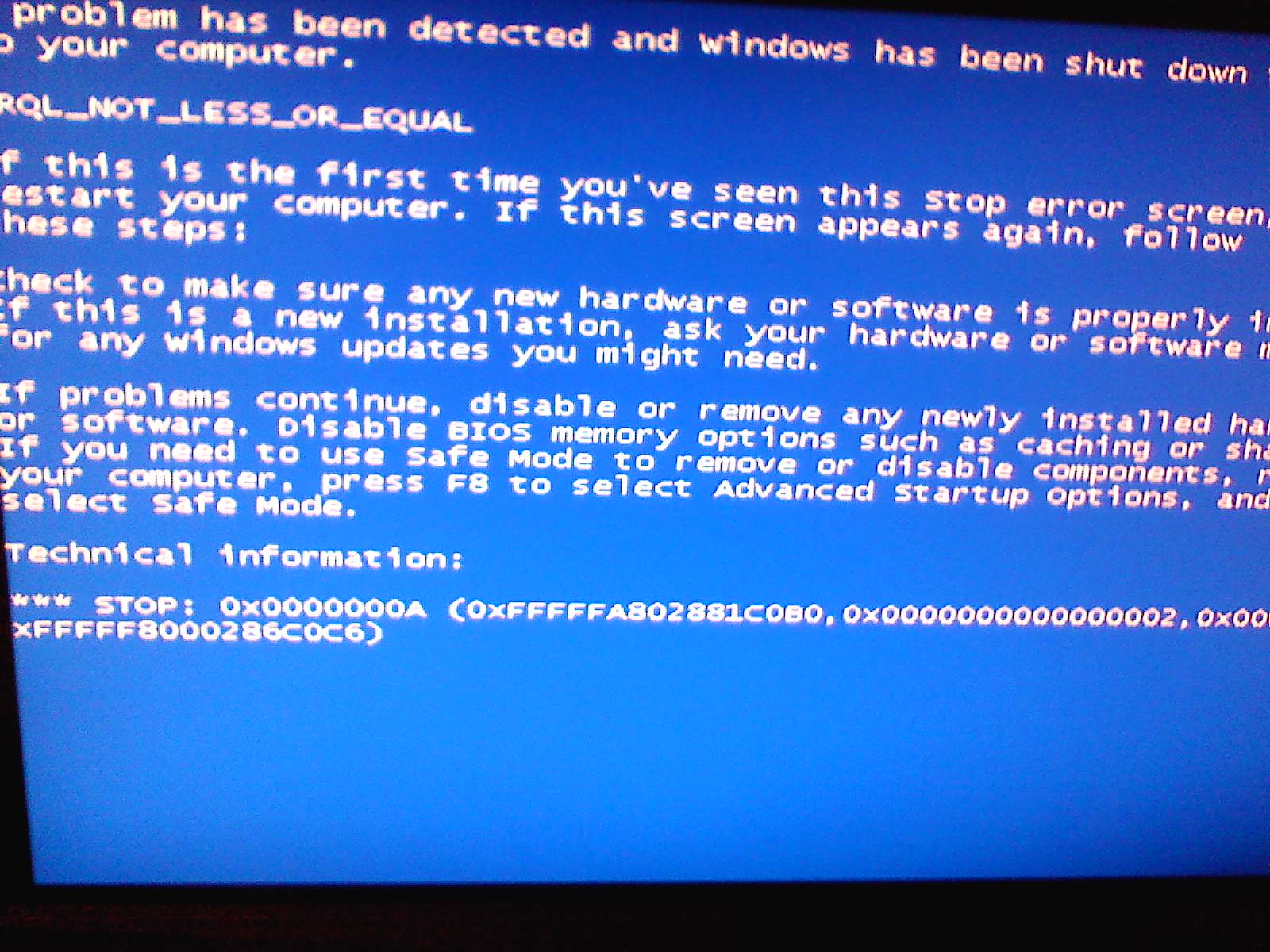 Seid dem ich den PC habe beklagen mich Bluescreens (IRQL_NOT_LESS_OR_EQUAL) STOP: 0x0000000A