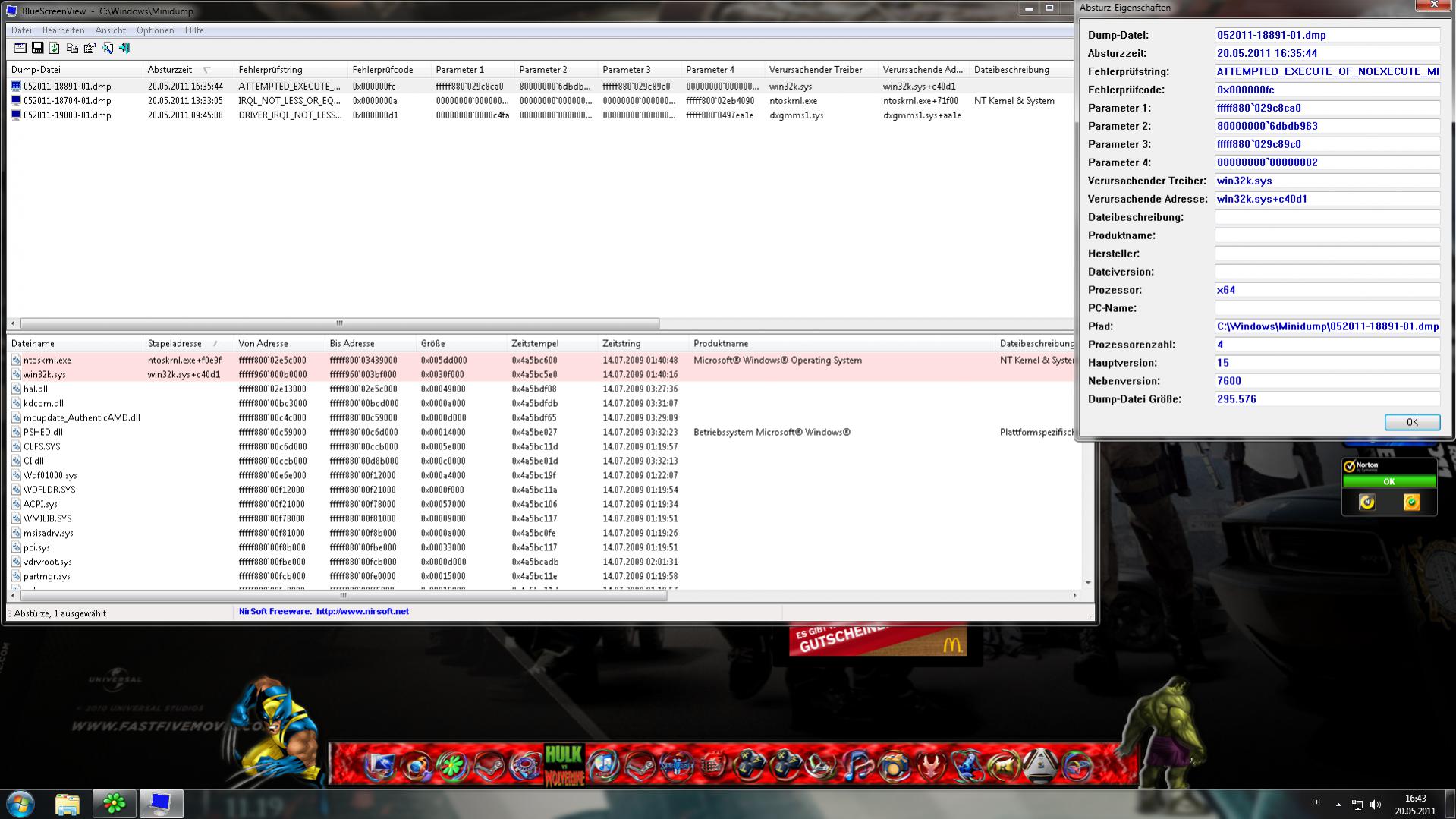 Spiel von der Externen gebootet, selber Fehler