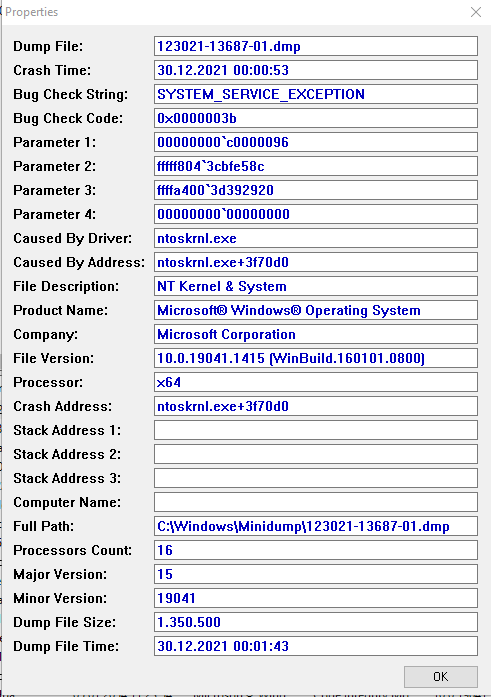 Ich habe seit neuem wieder viele bluescreens und habe absolut keine Ahnung was ich gegen diese tun kann. Meine RAM-Stick habe ich bereits geprüft aber sonst weiß ich wirklich nicht weiter. Mein Setup: AMD Ryzen 7 2700X, Corsair Vengeance 2x8 GB DDR4 3200 MHz, Asus ROG Strix B450-F. Ich freue mich auf jede Antwort und vielen dank schon einmal im voraus!