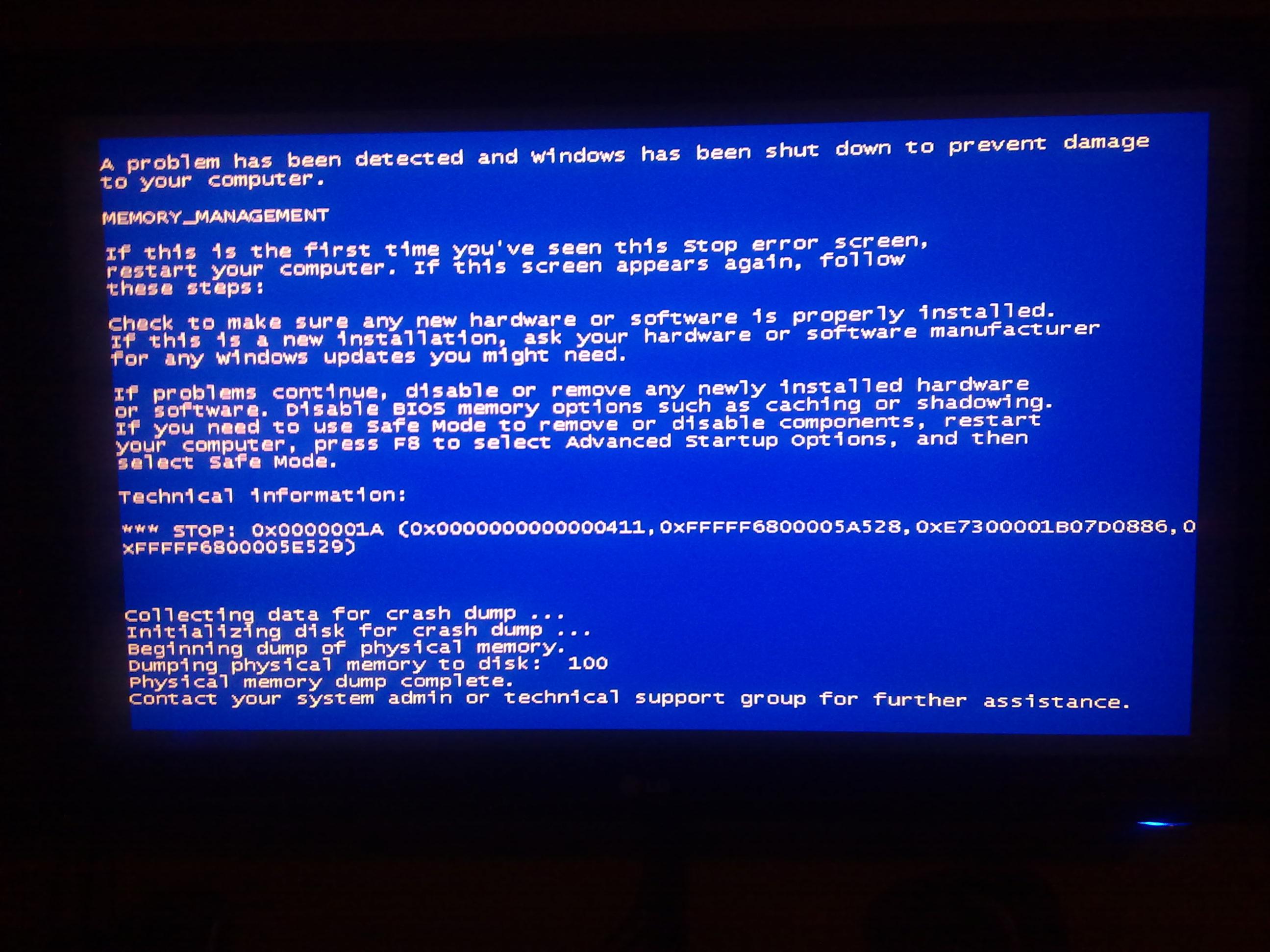 Der erste Bluescreen (memory management) ist laut internet auf corrupten speicher zu führen .. da cpu-cache und ram (hdd's kann ich auch absegnen) vorher immer funktionierten dachte ich es ist der vram der 6950 (habe sie wie bereits erwähnt von ebay, womöglich hat der vorbesitzer den speicher mit nem bios einer 6970 durchgeröstet) ... im nachhinein aber unwahrscheinlich, da der verkäufer ein großhändler ist und das selbe problem mit einer hd4850 aufgetreten ist...