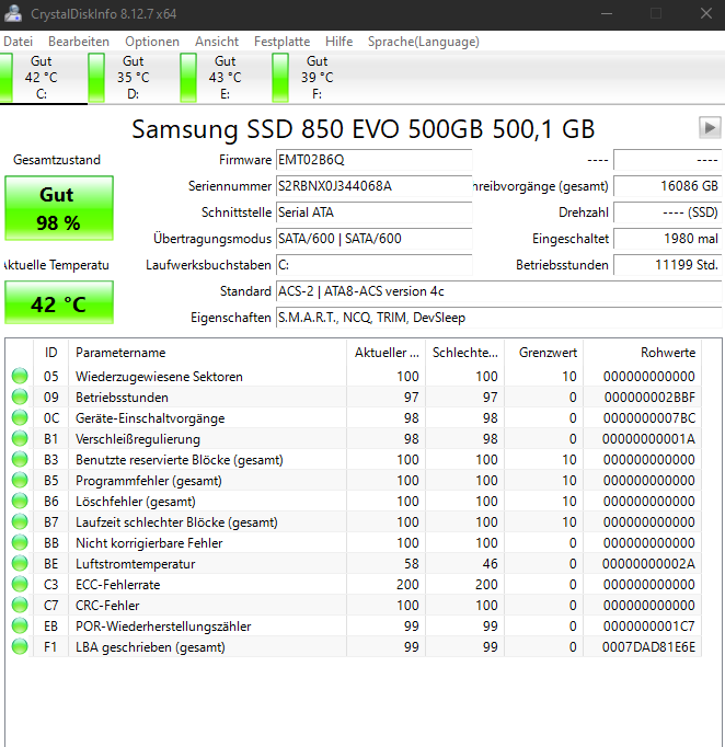 - Arbeitsspeicher (RAM): Crucial ballistix 2x16GB 3600mhz CL16