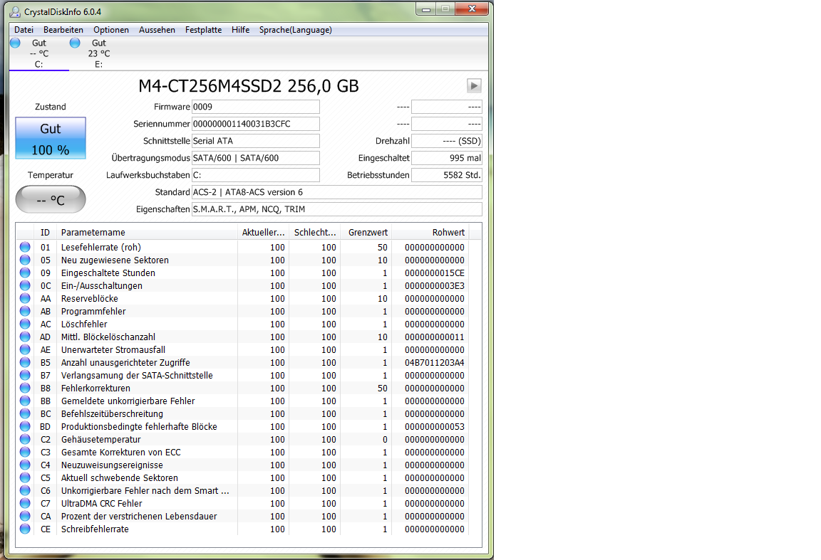 C7 100 100 __0 000000000000 UltraDMA CRC Fehler