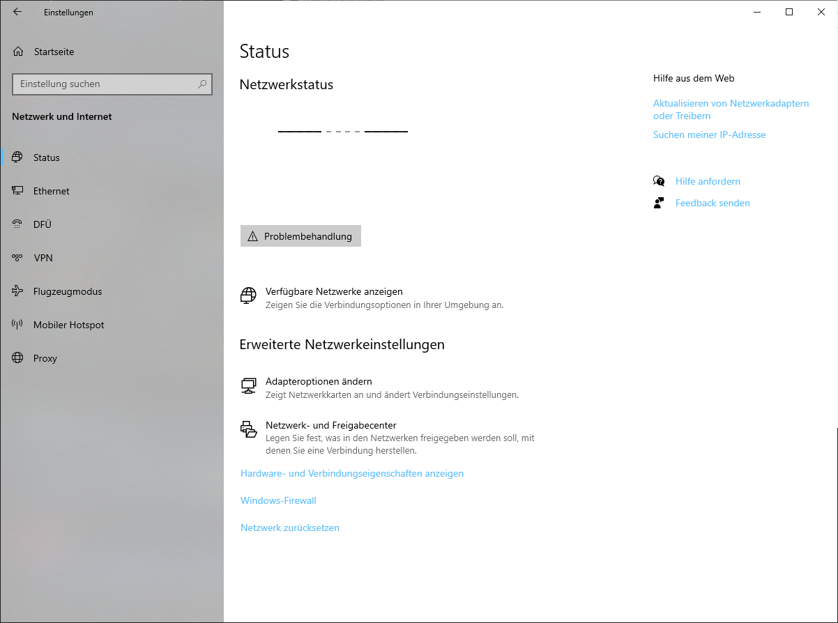 Ich konnte soeben aus irgendeinem Grund "Netzwerk und Internet" in den Einstellungen öffnen.
