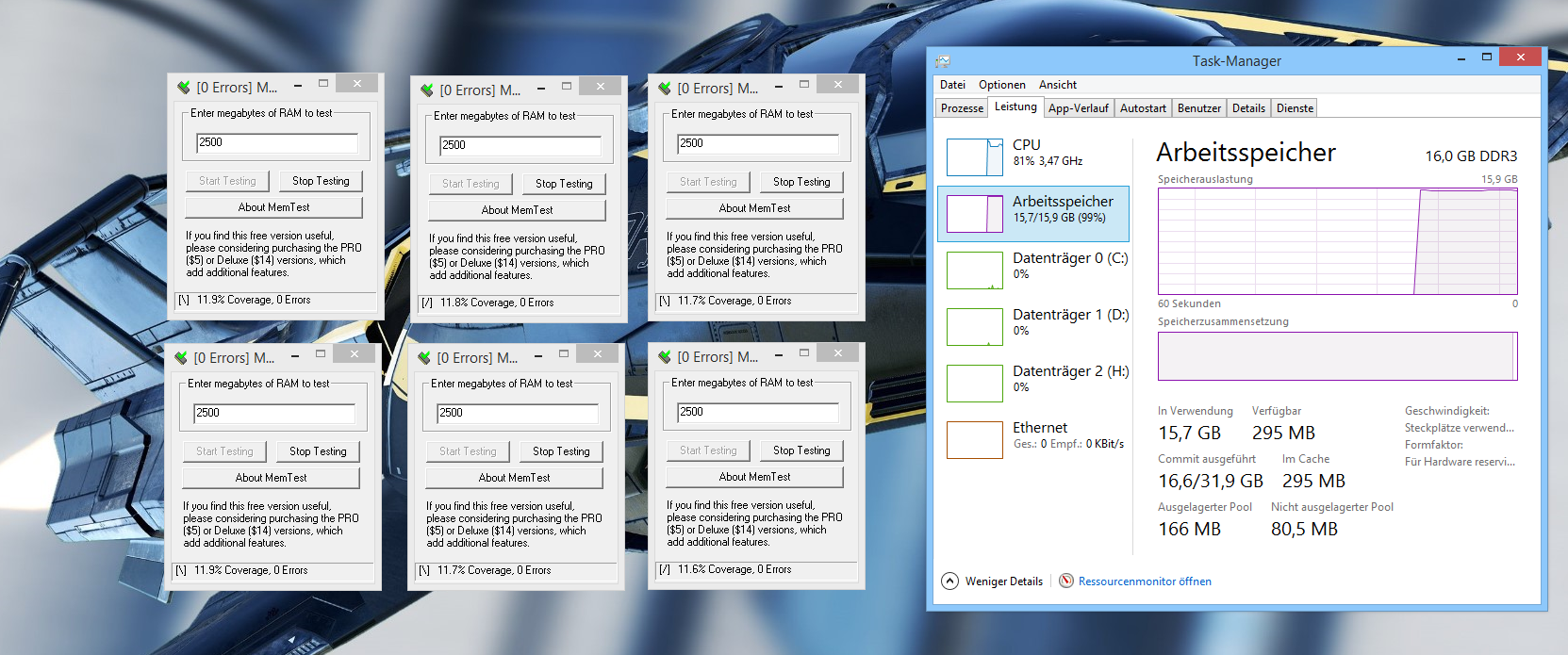 Seit etwa 3 Tagen habe ich mehrmals täglich einen Bluescreen. Die Bluescreens treten sowohl am Desktop (zB beim Stream gucken) als auch in Spielen (Hearthstone) auf. Hearthstone habe ich bereits im Win 7 Komp.Modus gestartet, hat leider nichts geändert und ich kann keinen Zusammenhang zwischen HS und den Bluescreens feststellen.