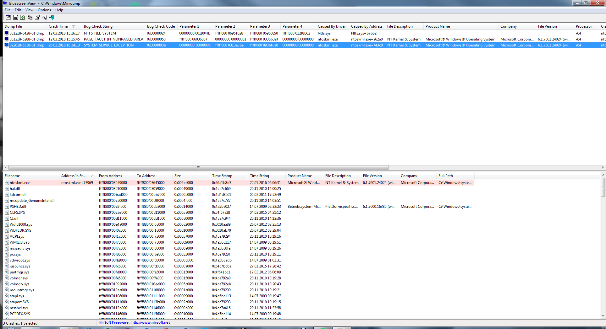 Das verwunderliche ist für mich dass der dritte dem zweiten Bluescreen direkt nach dem Neustart folgte.