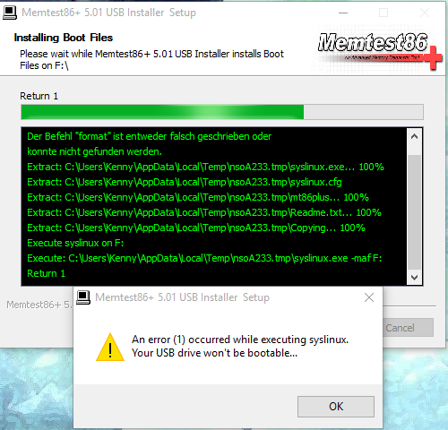 Memtest kann den USB-Stick nicht formatieren, siehe Screenshot. Habe es mit 3 verschiedenen USB-Sticks probiert und natürlich auch als Admin. Reicht es einfach von Hand den Stick in FAT32 zu formatieren?