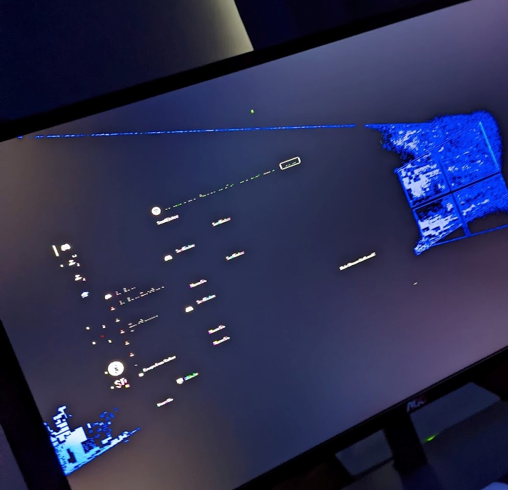 - Schwarzer Bildschirm mit "Schriftartefakten"