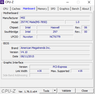 Deine CPU wird erst ab Bios 4.2 unterstützt! Du hast 4.1 drauf. Ein Bios-Update wäre also sehr ratsam, zumal auch viele "Memory-Compatibility"-Fehler behoben wurden: https://de.msi.com/Motherboard/support/Z97-PC-Mate.html#support_download