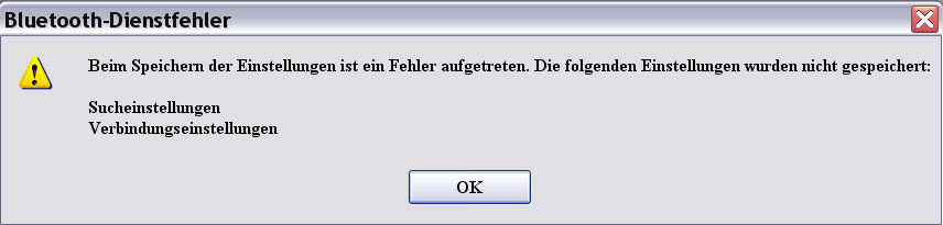 In den Einstellungen des Bluetooth-Dienstes in Win XP, Service Pack3, wollte ich die Sichtbarkeit des Pc aktivieren, doch nach setzen des entsprechenden Häckchens kommt folgende Meldung: