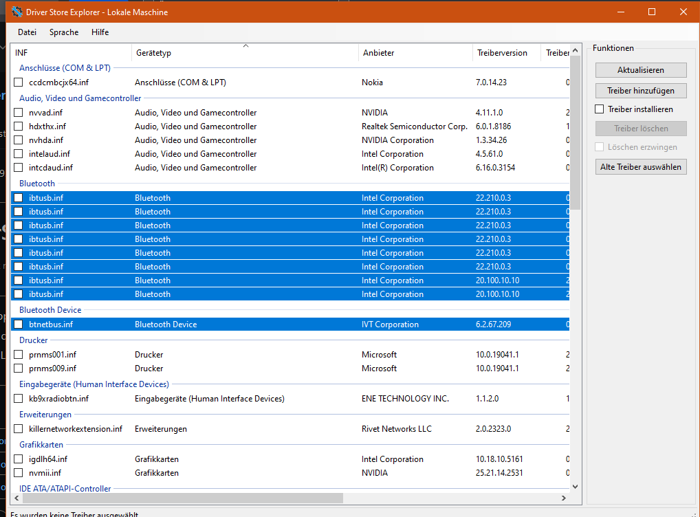 Dabei war auch der Bluetooth-Treiber. Danach ging Bluetooth nicht mehr. Das habe ich aber erst später mitbekommen, da ich Bluetooth erst später nutzen wollte. Ich habe im Laufe der Zeit versucht, die Treiber vom Hersteller zu installieren, aber es kommt immer die Meldung, es sei eine neuere Vision vorhanden und es gelingt mir nicht, die alten Treiber zu installieren.