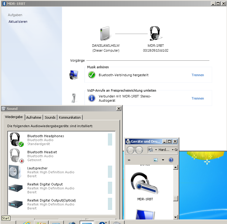 Mein PC besitzt kein Bluetooth; lediglich mein mein Handy und mein Tablet.