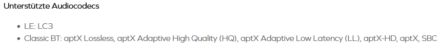 Da gibt es ja einige, aptX Adaptive, aptX LL und so weiter, aber soviel ich weiß unterstützt Windows diese gar nicht.