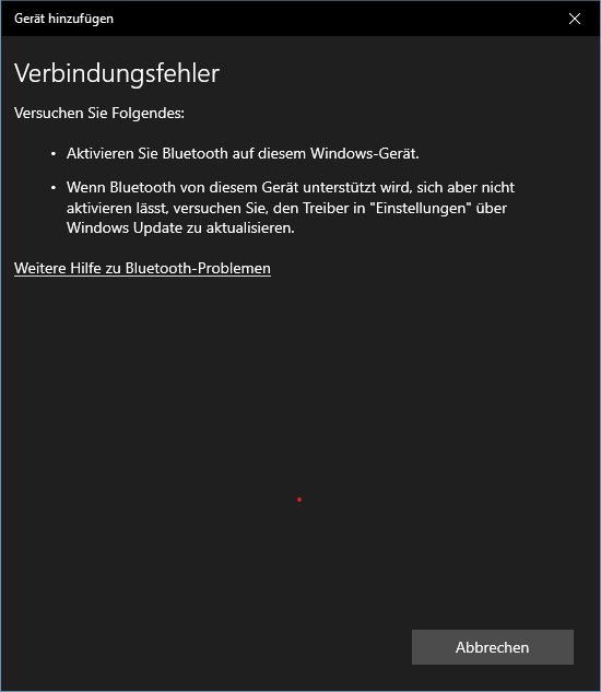 Problembehandlung von Windows brachte auch keinen Erfolg.