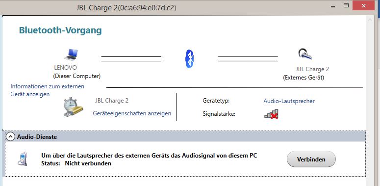 Wurde der Lautsprecher richtig gepairt? Findet das Notebook den Lautsprecher?