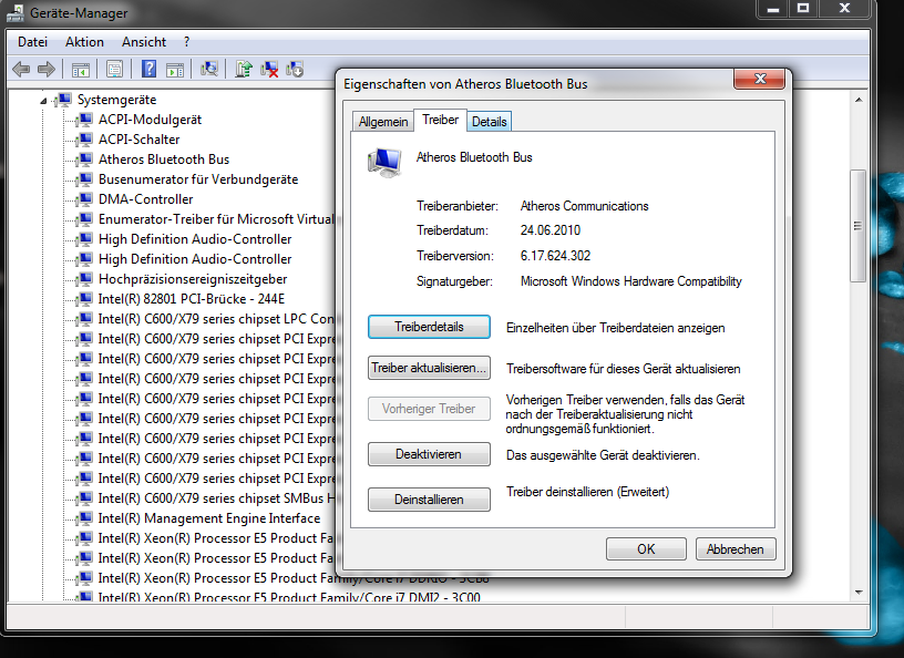 Es handelt sich um den Athros Bluetooth und den Treiber habe ich schon mehrfach reinstalliert.