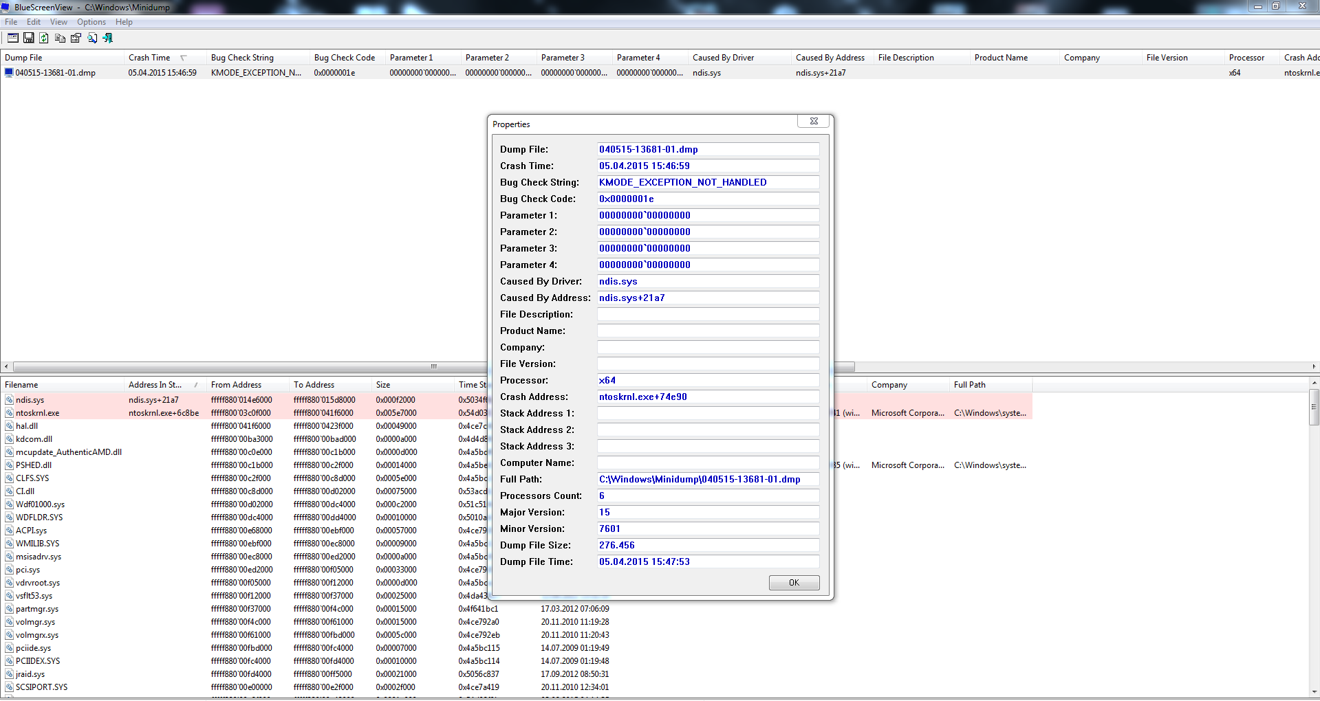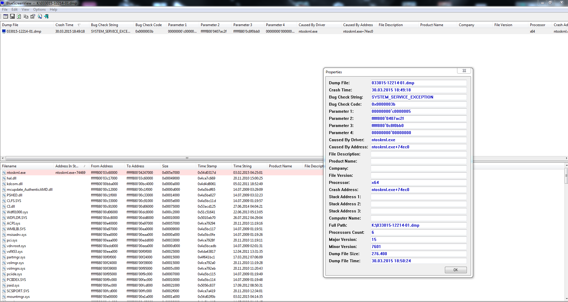 seit geraumer Zeit schon plagen mich "Bluescreens", sie sind zwar selten jedoch nerven sie. Das Problem dabei ist jedoch, dass ich die Ursache einfach nicht ausfindig machen kann. Der Bug Check Code 0x0000003b und "Treiber" ntoskrnl.exe treffen leider auf tausende Sachen zu, so zumindest wird es in anderen Foren beschrieben. Als Bug Check String wird meistens nichts angezeigt, wenn doch dann "SYSTEM_SERVICE_EXCEPTION"