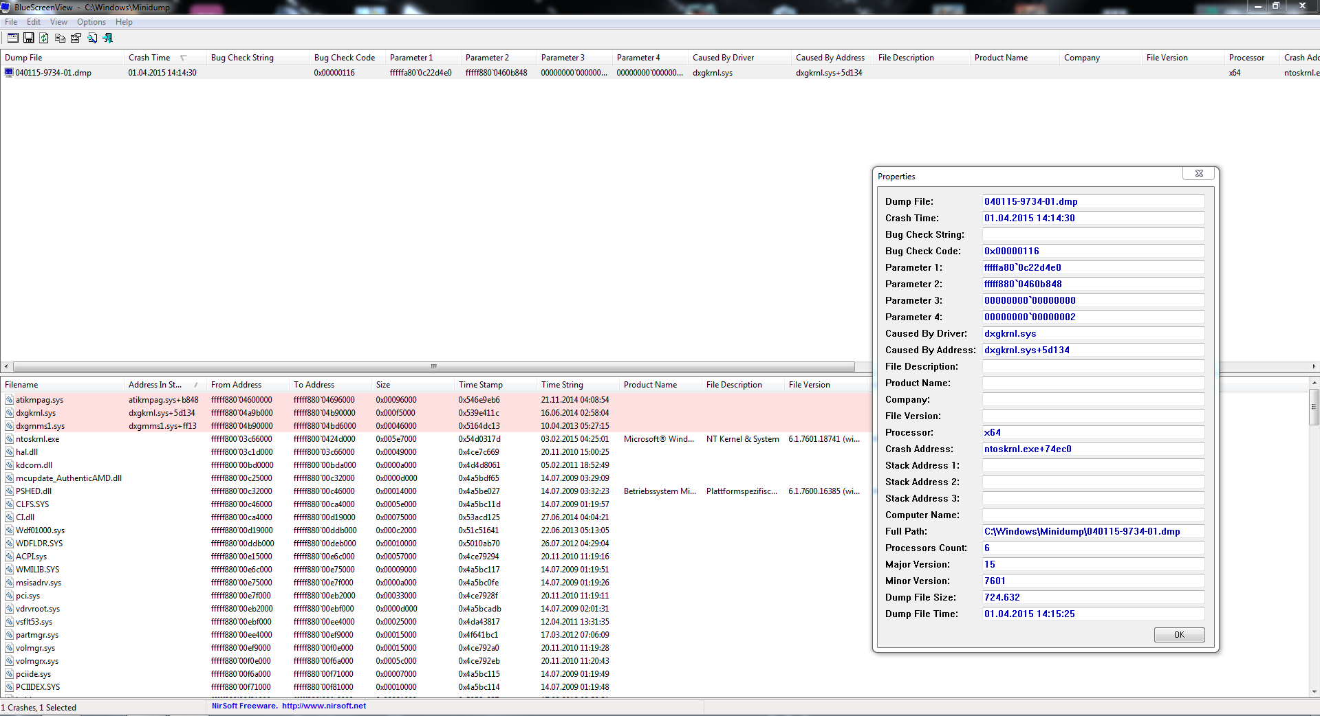 Leider habe ich die alten "Bluescreens" nicht mehr im Minidump gespeichert nur den von heute:
