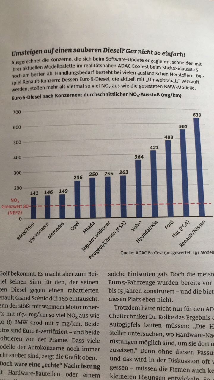 Dabei wurde doch BMW bisher nichts nachgewiesen und es gibt einen sehr vernünftigen Grund, warum Audi/VW und Mercedes geschummelt haben, BMW jedoch nicht. BMW verwendet einen NOx Speicherkat und AdBlue. Mercedes und Audi dagegen nur AdBlue. Ein Freund von mir, der Motorentechniker ist, sagt, dass diese Speicherkats leistungsreduzierend sind.