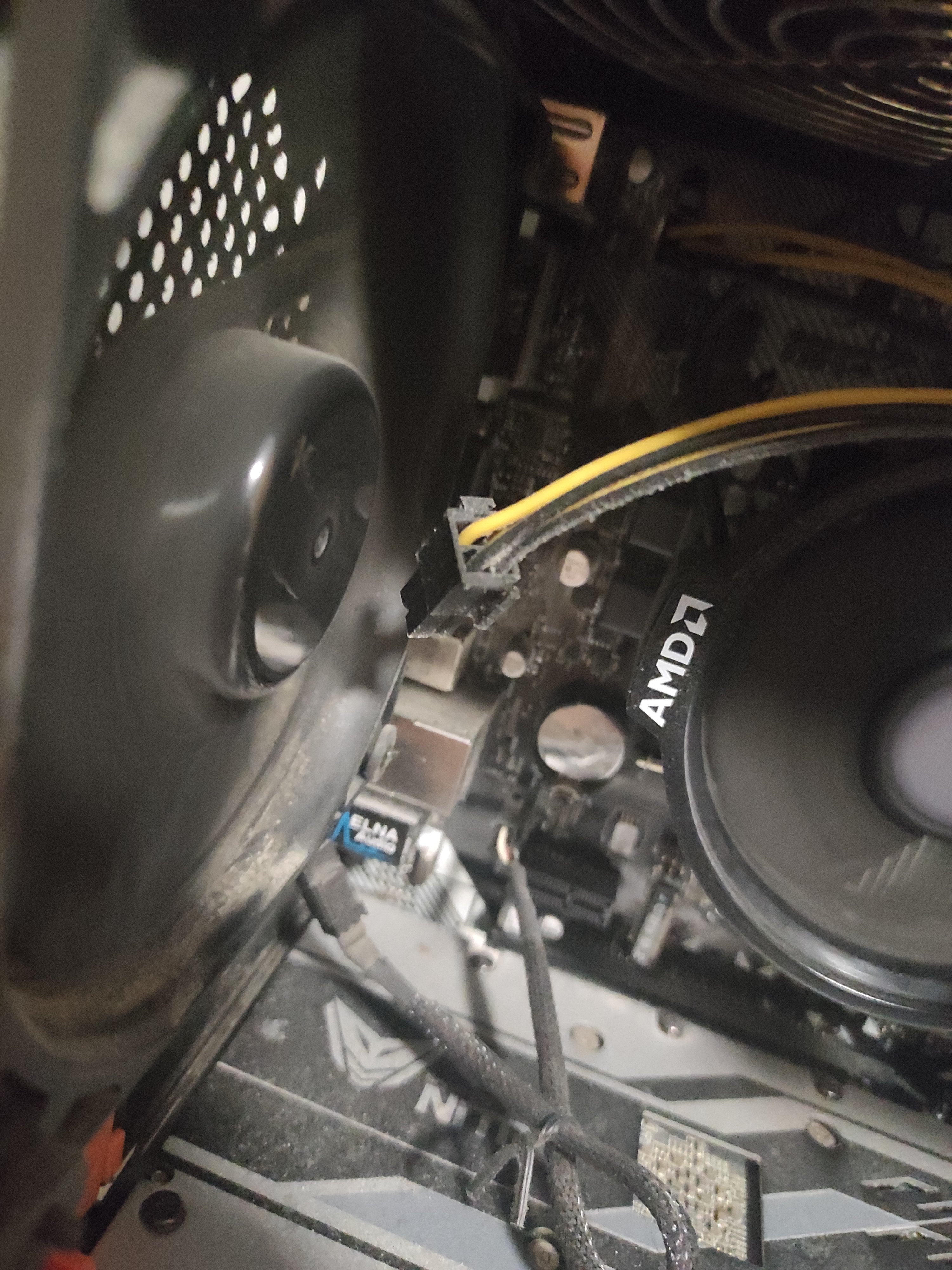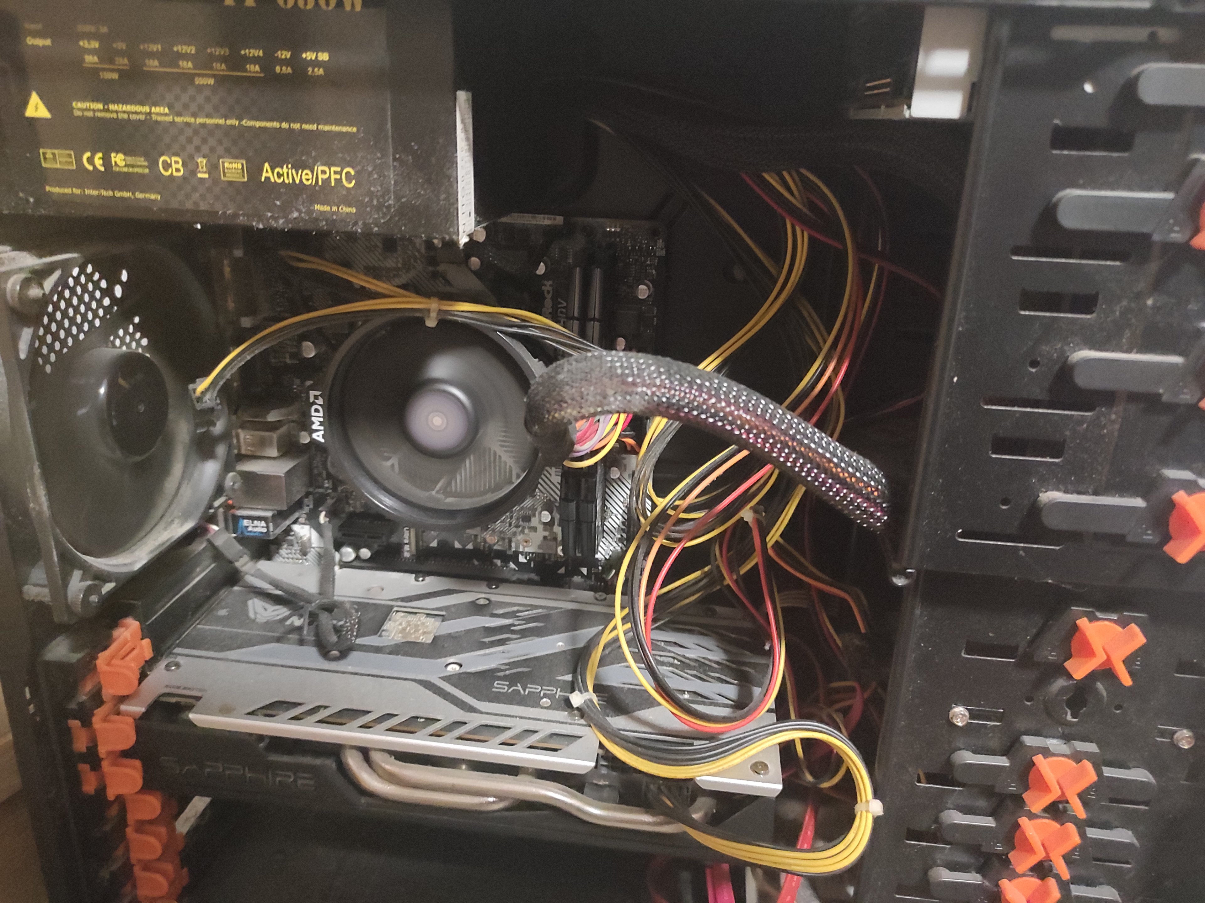 Den frei schwebenden Kabel solltest du irgendwo befestigen, nicht dass er in die Lüfter kommt.