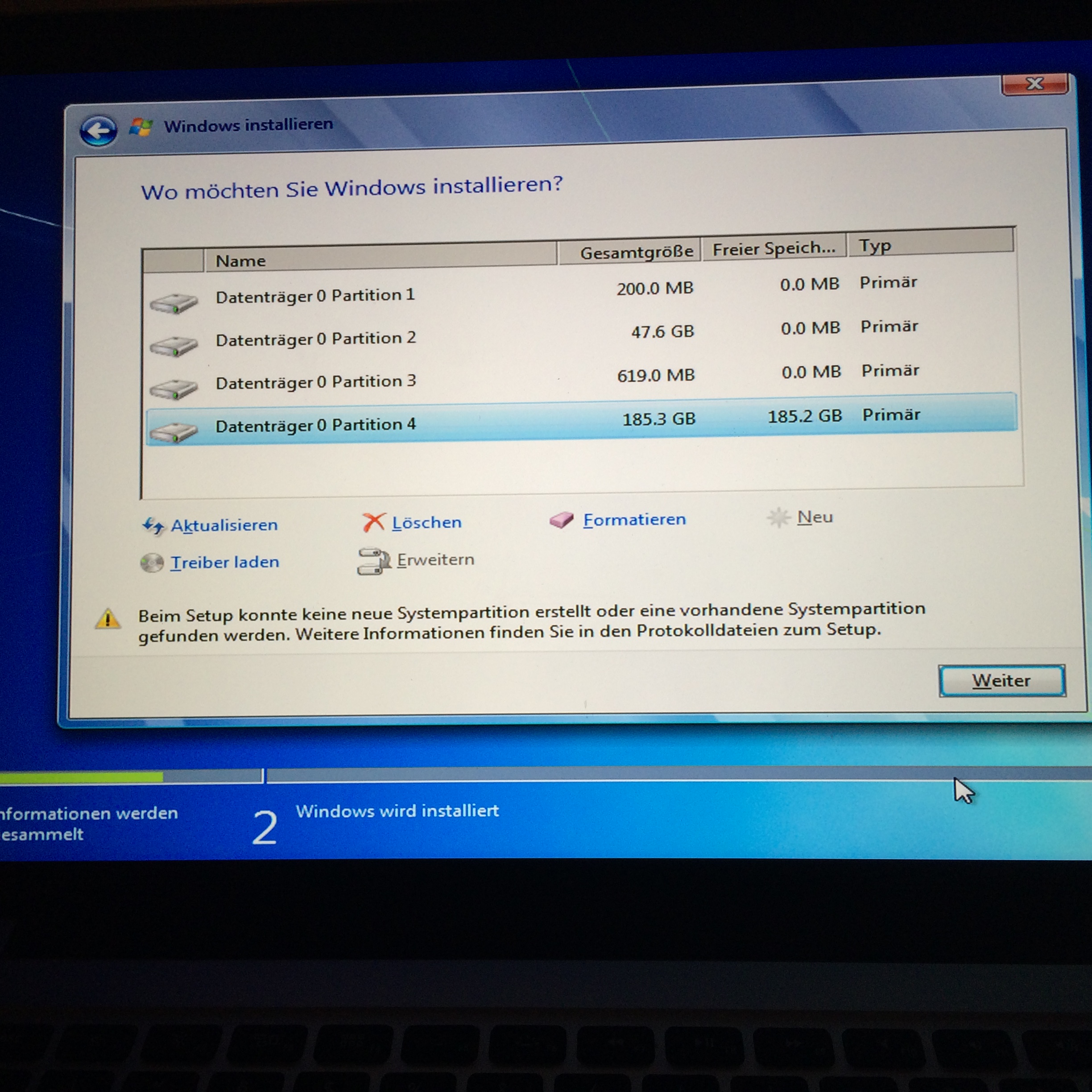 Aber immerhin kommst Du ja weiter, wenn die Partition formatiert werden kann.