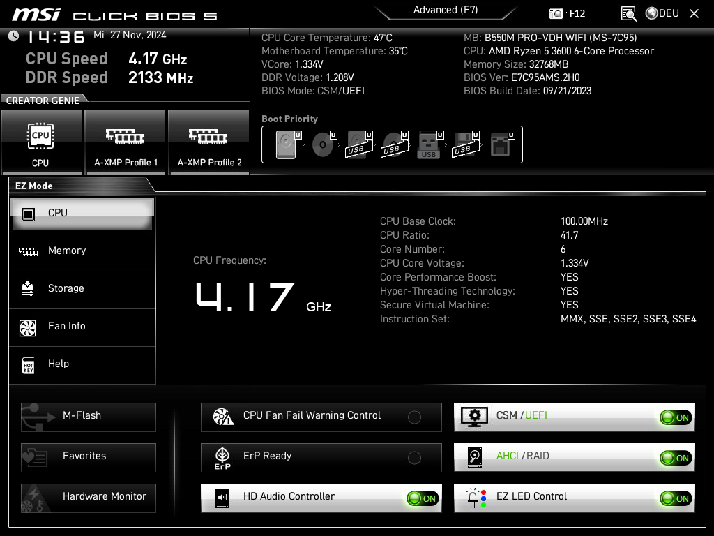 Habe ein MSI B550 mainboard falls das wichtig ist für Bios Einstellungen.